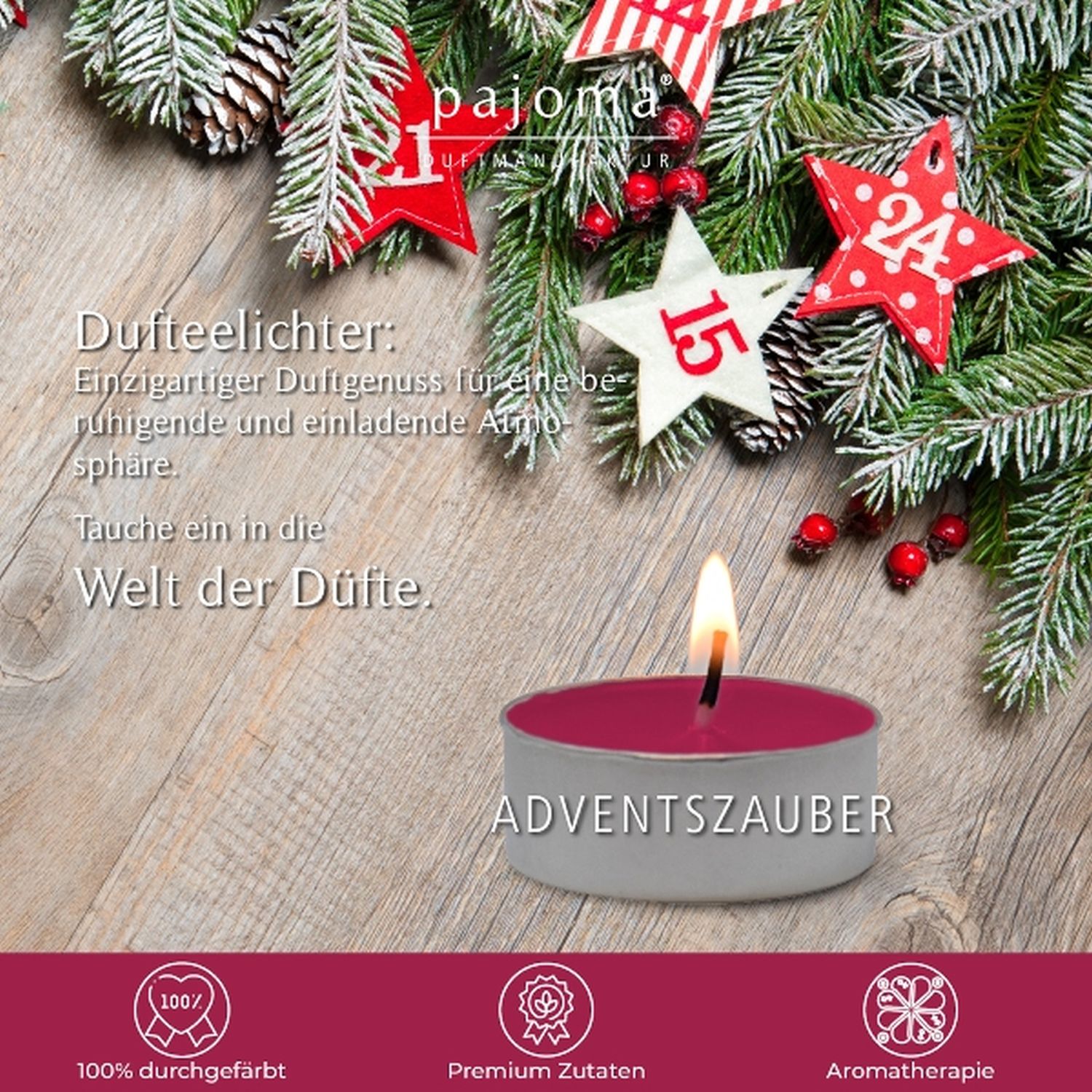 30er Pack Duft Teelichter ADVENTSZAUBER rot D. 3,5cm Pajoma