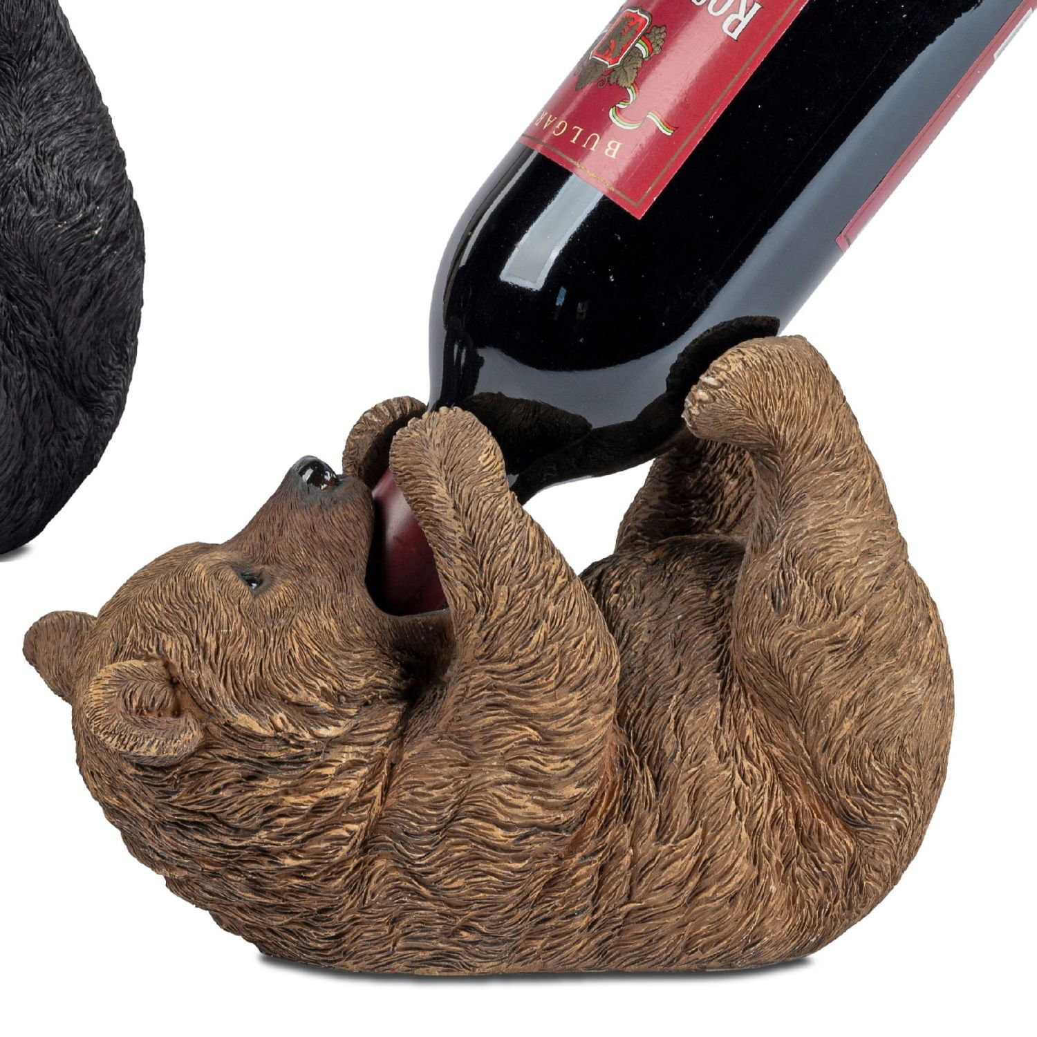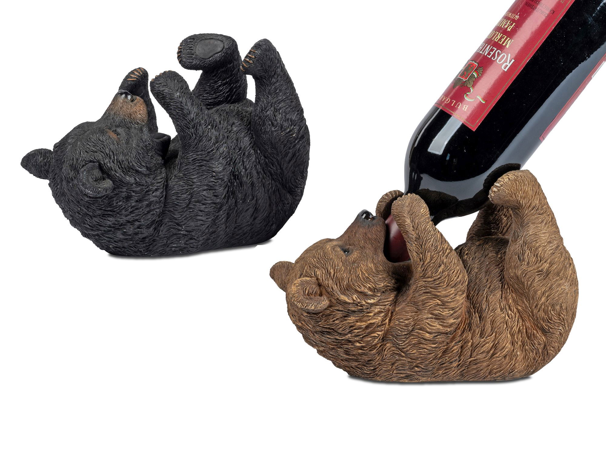Flaschenhalter Dekofigur liegender Bär schwarz H. 22cm Kunststein Formano