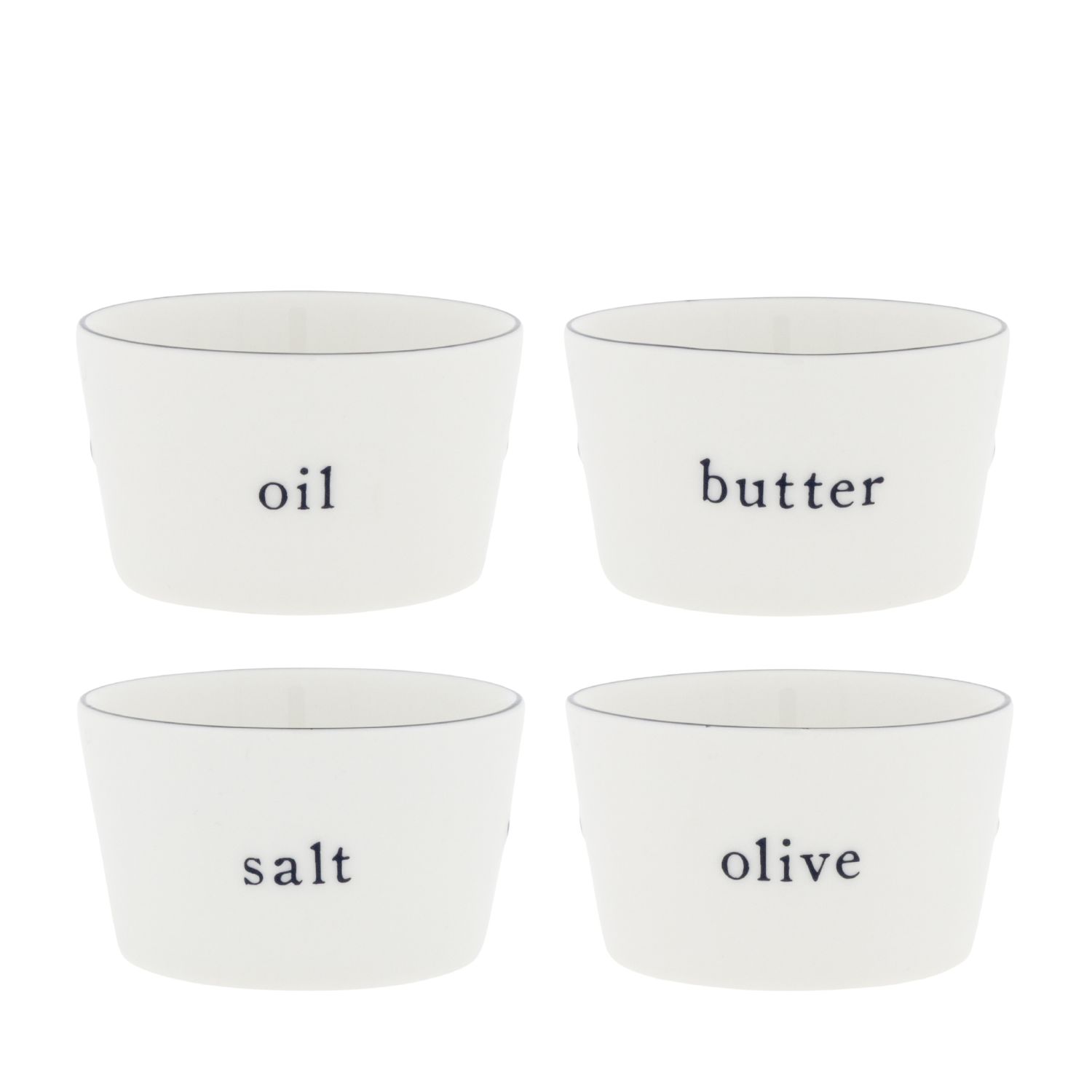 4er Set Dipschalen mit Salt Butter Oil Olive Schriftzug 8cm Bastion Collections
