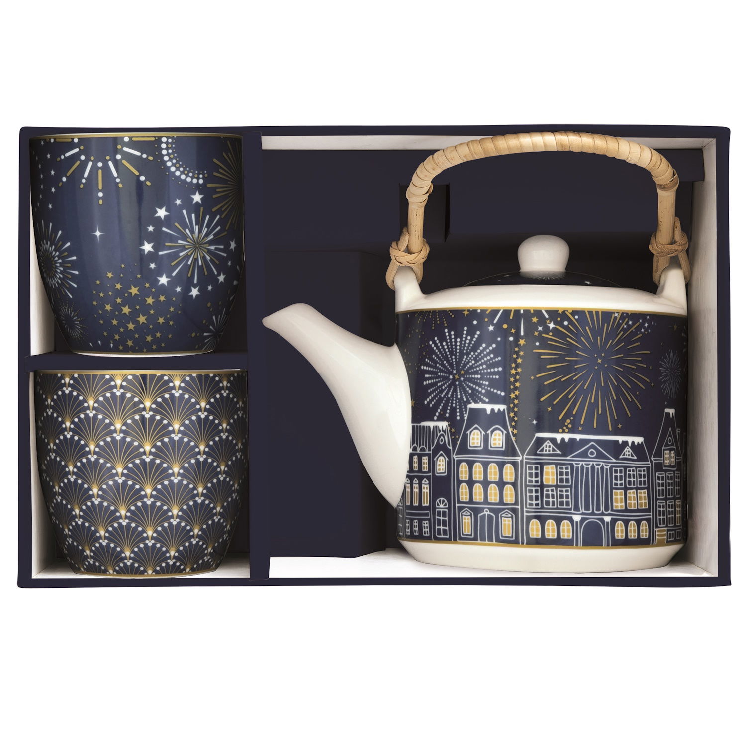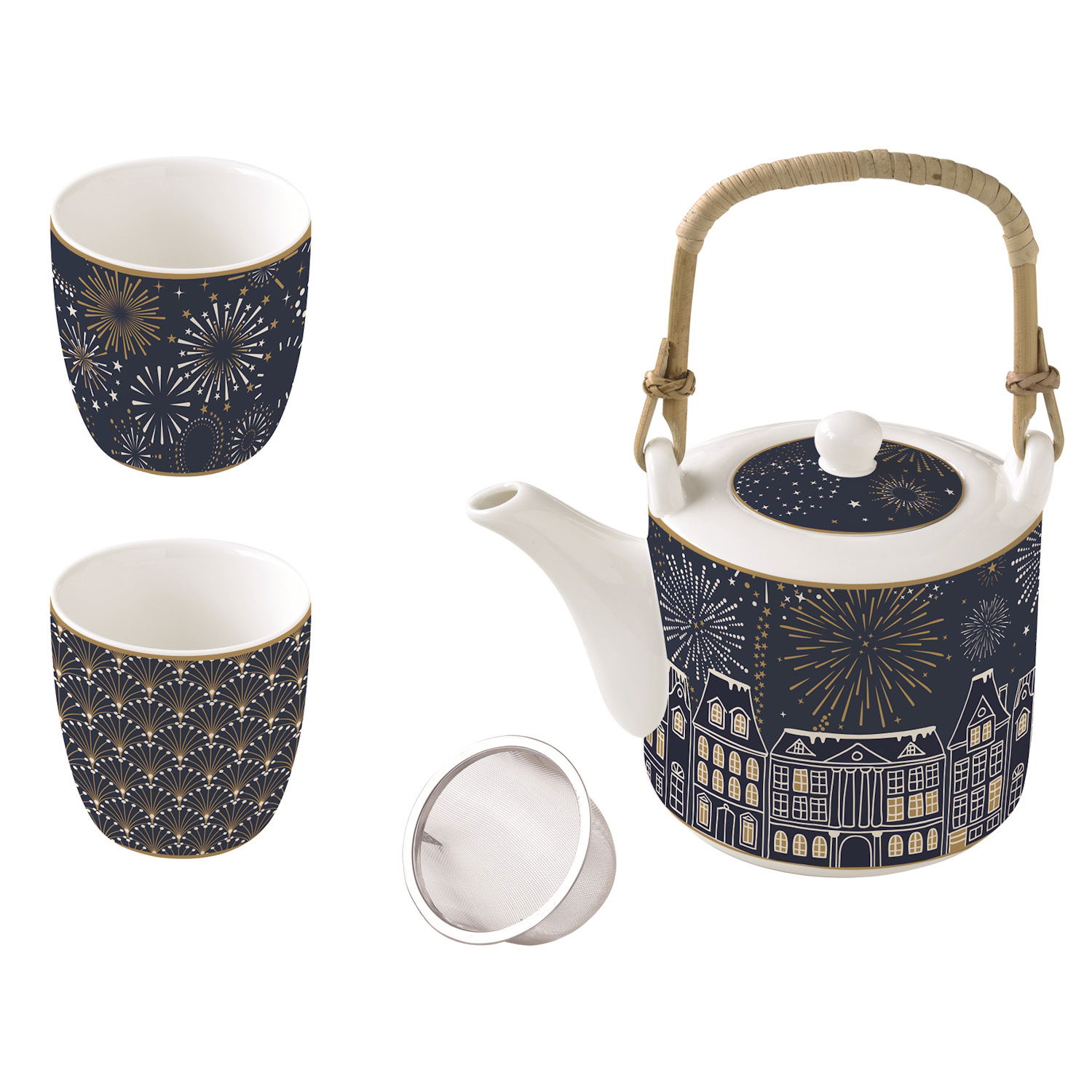 Teekanne Midnight Feuerwerk für 600ml mit Sieb und 2 Bechern in GB Easy Life