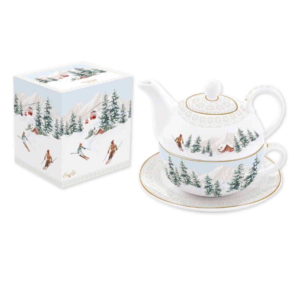 Teekanne Tea for One CHALET Winterhütte für 350ml aus Porzellan Easy Life