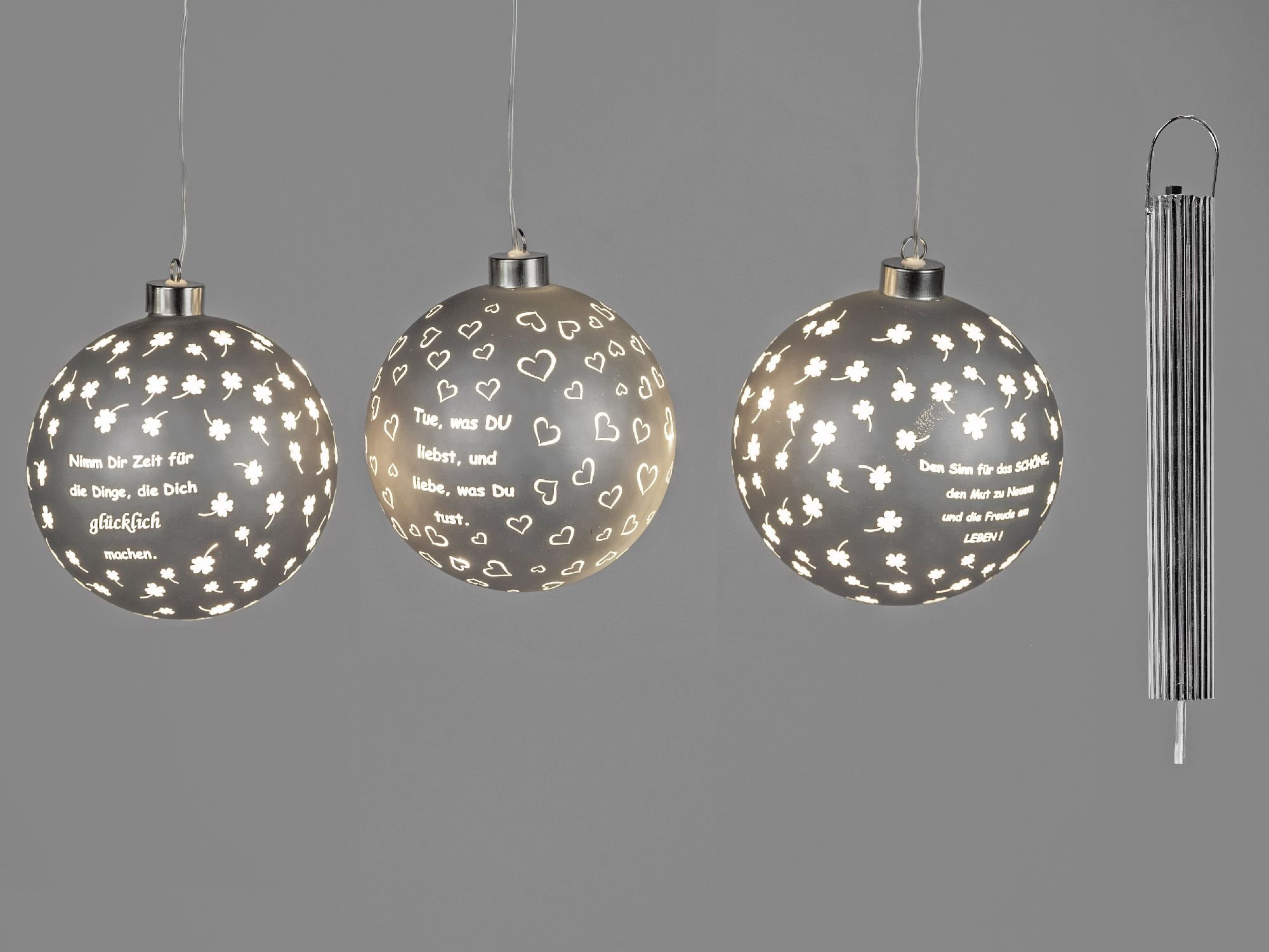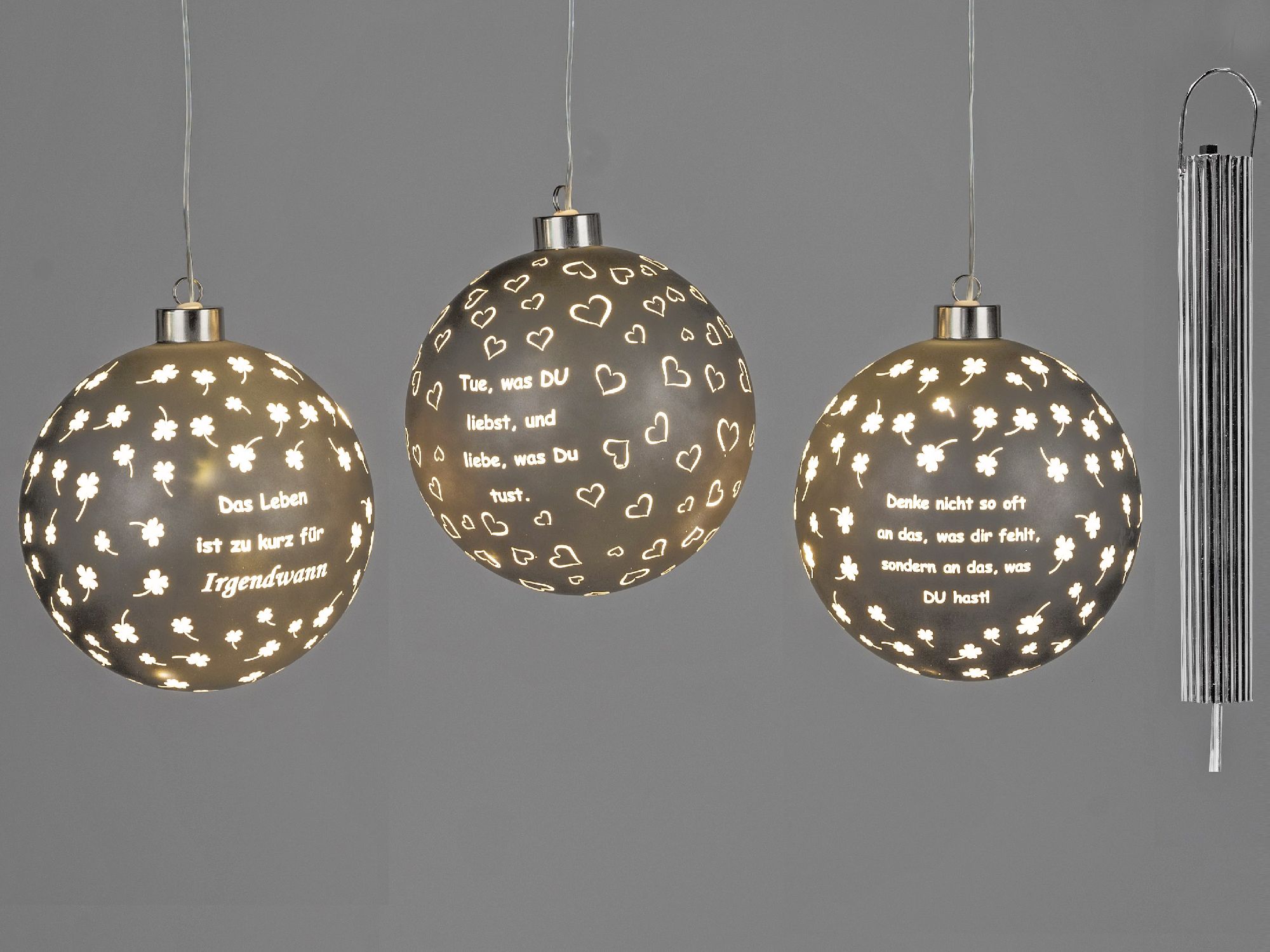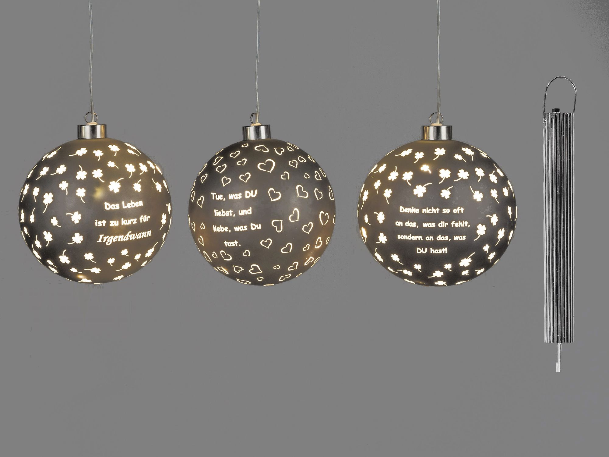 3er Set LED Deko Kugeln Sprüche zum hängen D. 10cm matt mit Timer Formano