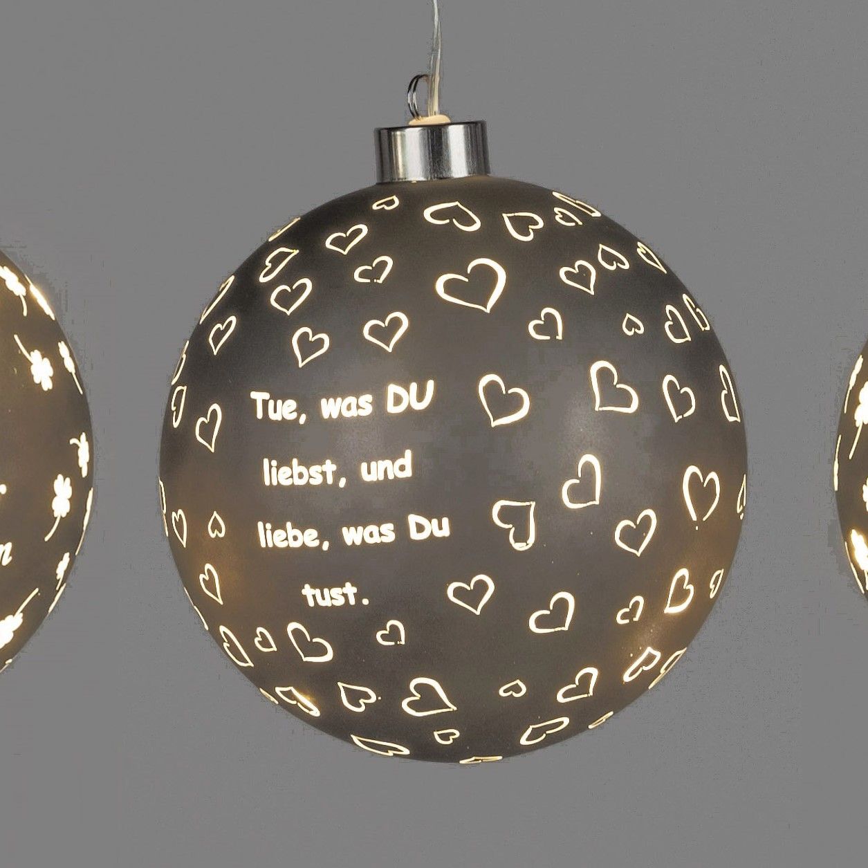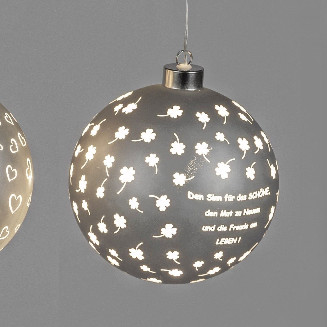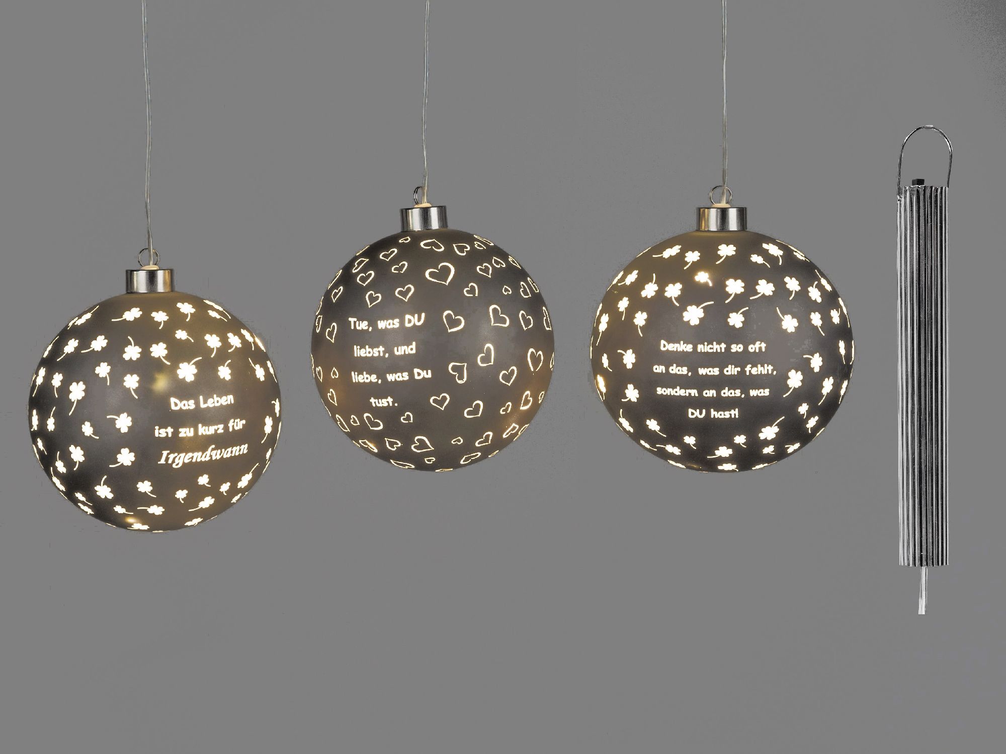 3er Set LED Deko Kugeln Sprüche zum hängen D. 10cm matt mit Timer Formano