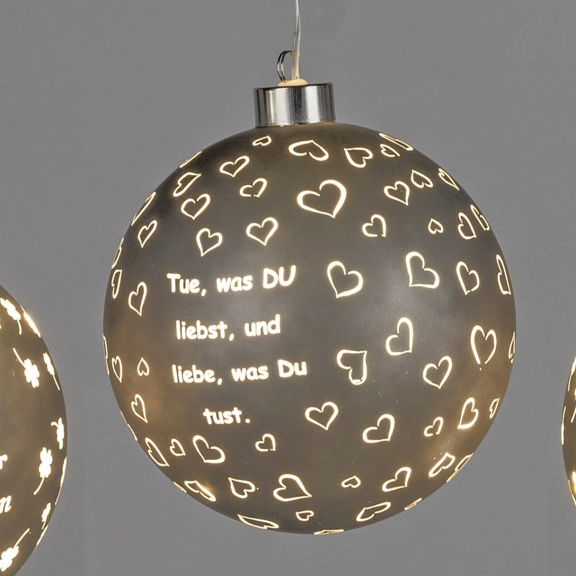 Deko Kugel Spruch Tue was du liebst ... zum hängen D. 15cm mit Timer Formano