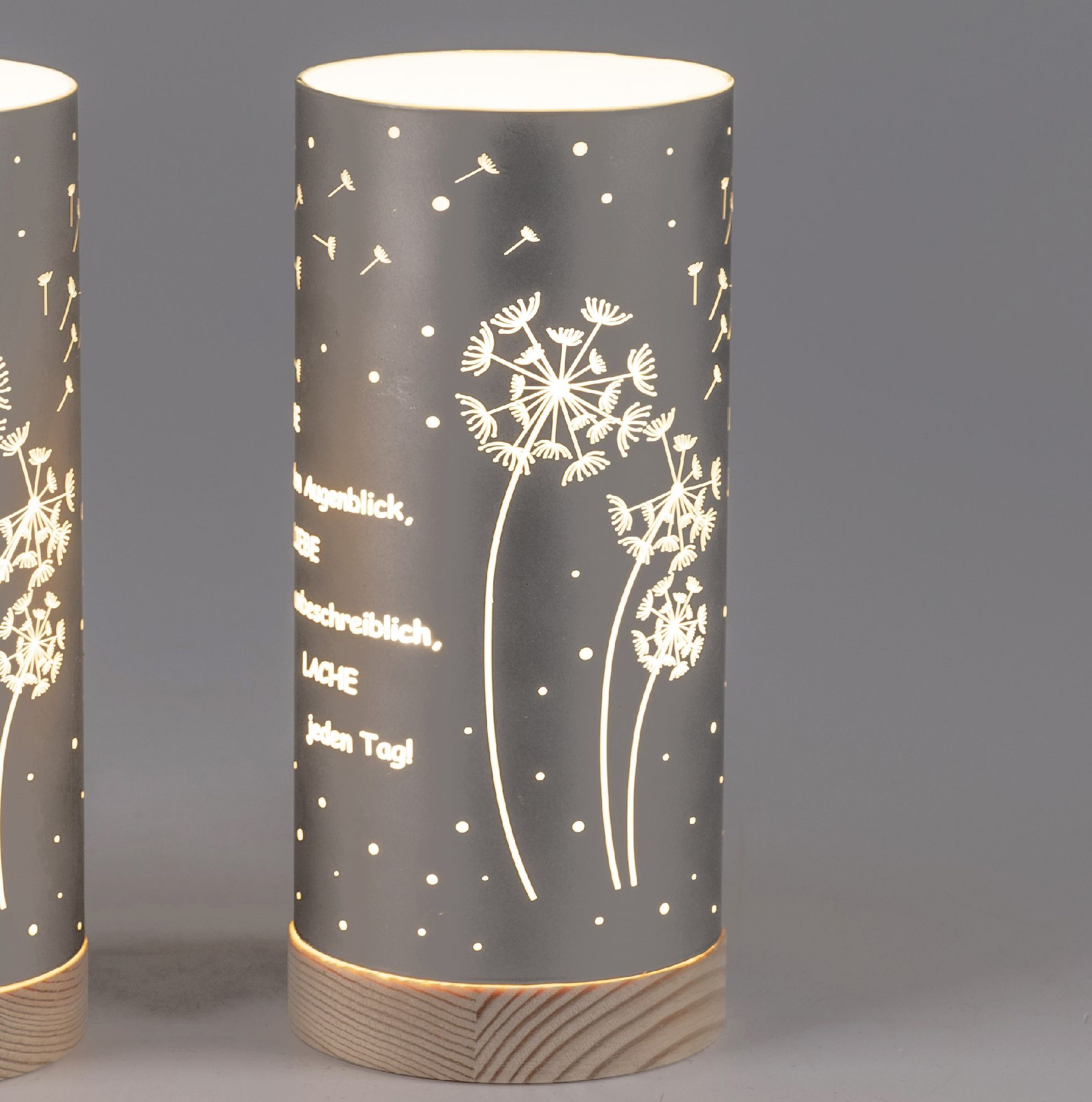 LED Tischlampen mit Spruch Lebe jeden Aufgenblick ... H. 20cm grau Timer Formano
