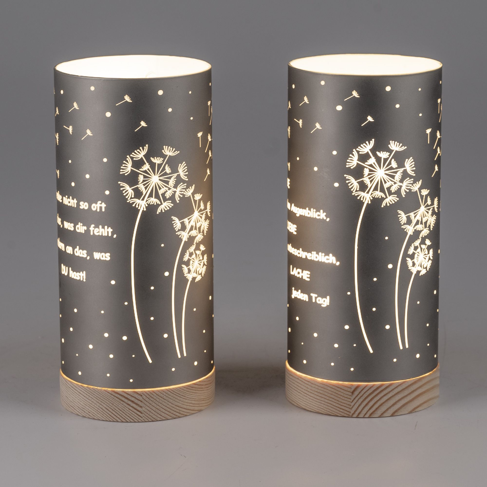 2er Set LED Tischlampen Pusteblumen mit Spruch H. 20cm silber Formano