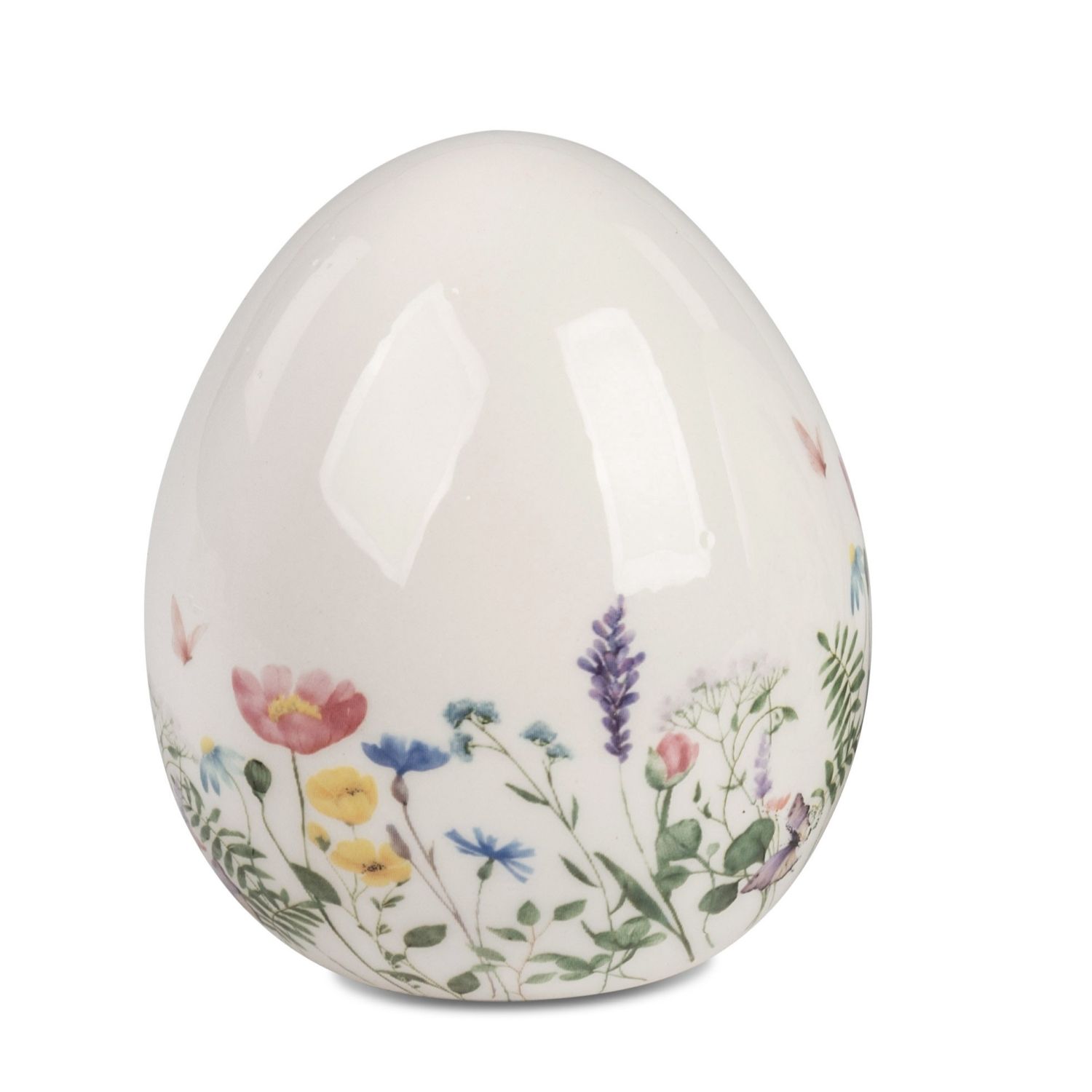 Dekoobjekt Ei Blumenwiese H. 10cm weiß bunt aus Steingut Formano F26