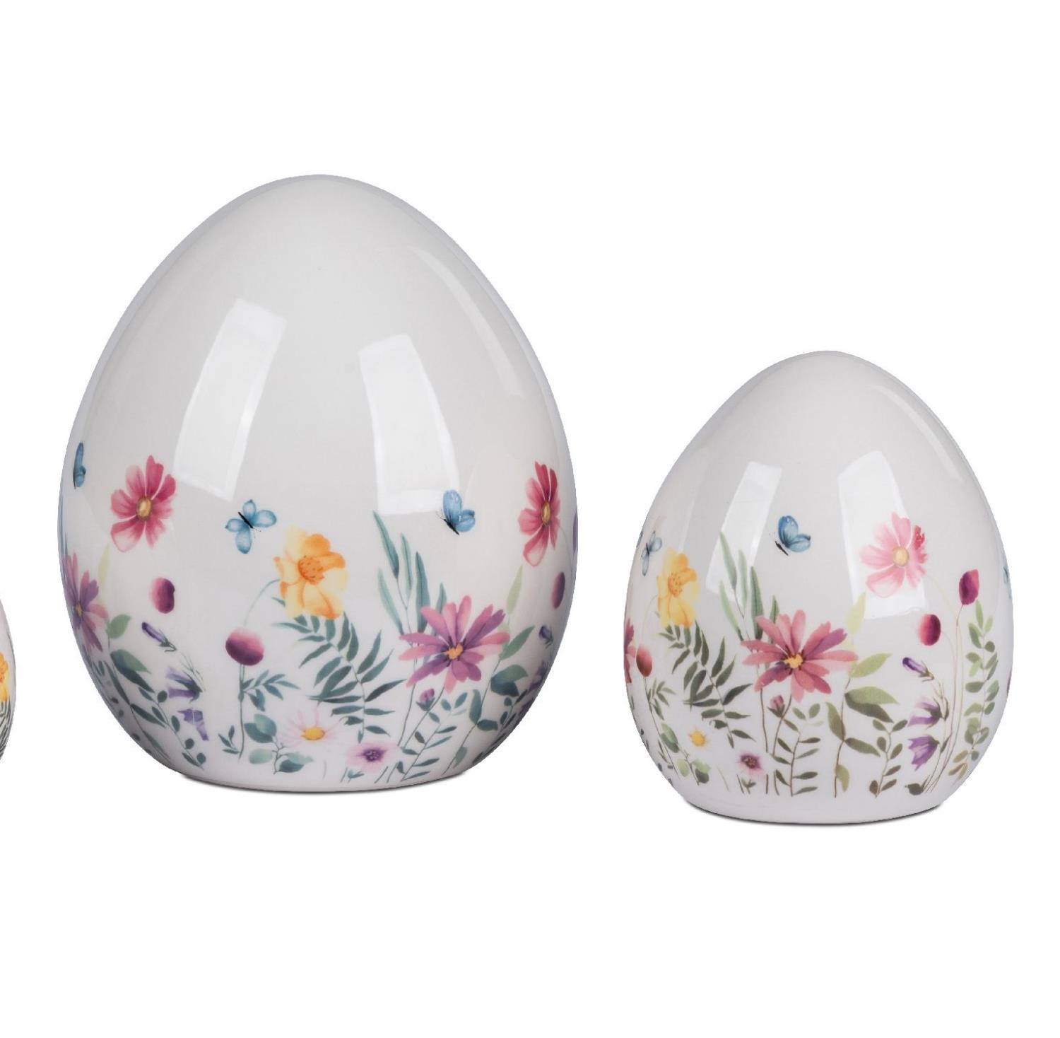 2er Set Oster Eier BLUMENWIESE H. 13 + 18cm weiß bunt Steingut Formano F26
