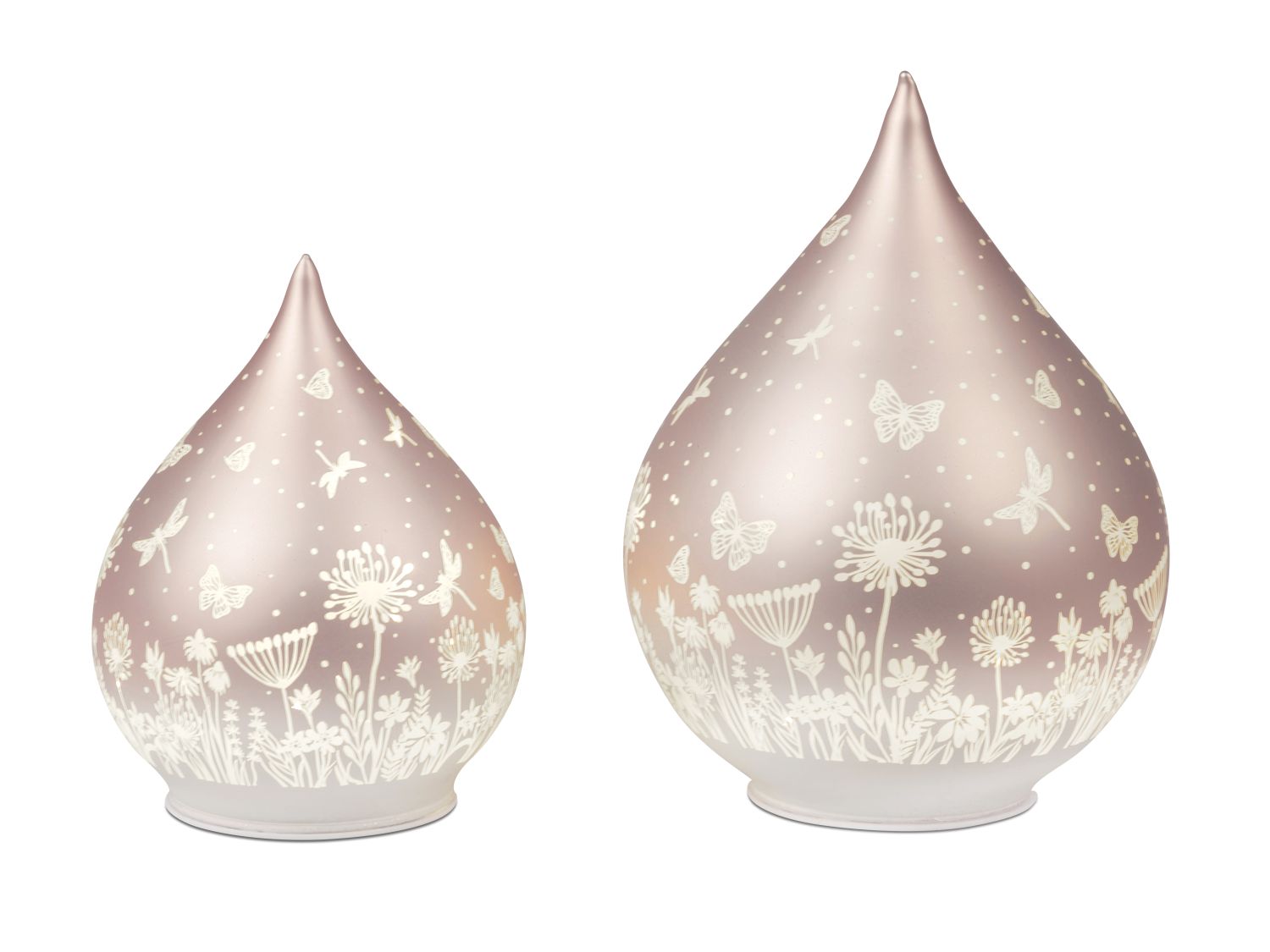 LED Dekoobjekt Tropfen Blumenwiese Pastell-Peach rosa H. 20cm mit Timer Formano