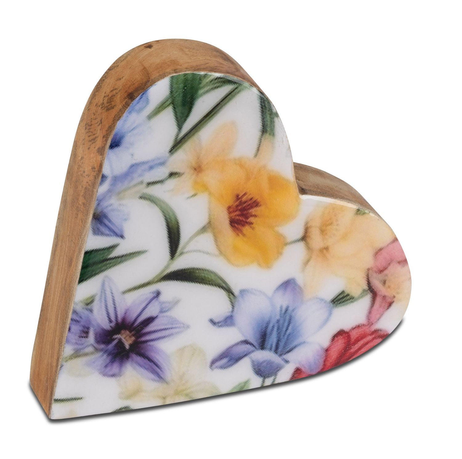 Deko Herz Blumenmeer liegend D. 14cm aus Mangoholz mit Emaille Formano F26