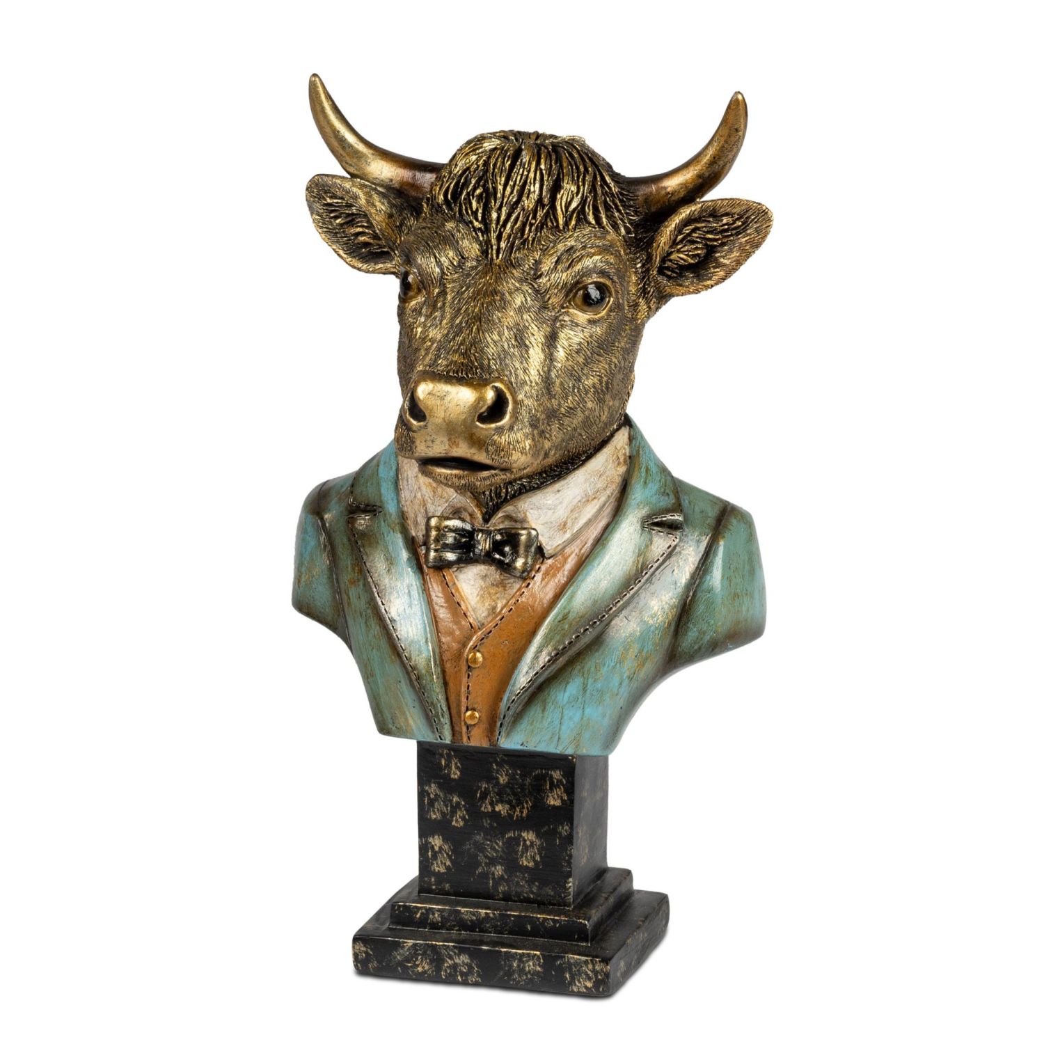 Dekoobjekt Büste Kuh im blauen Anzug H. 23cm Kunststein Formano