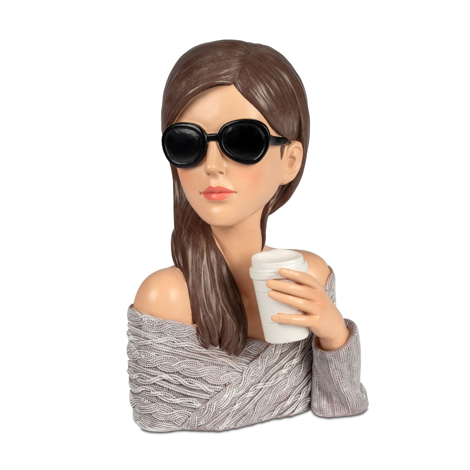 Deko Büste Dame mit Kaffeebecher und Sonnenbrille H. 25cm Formano