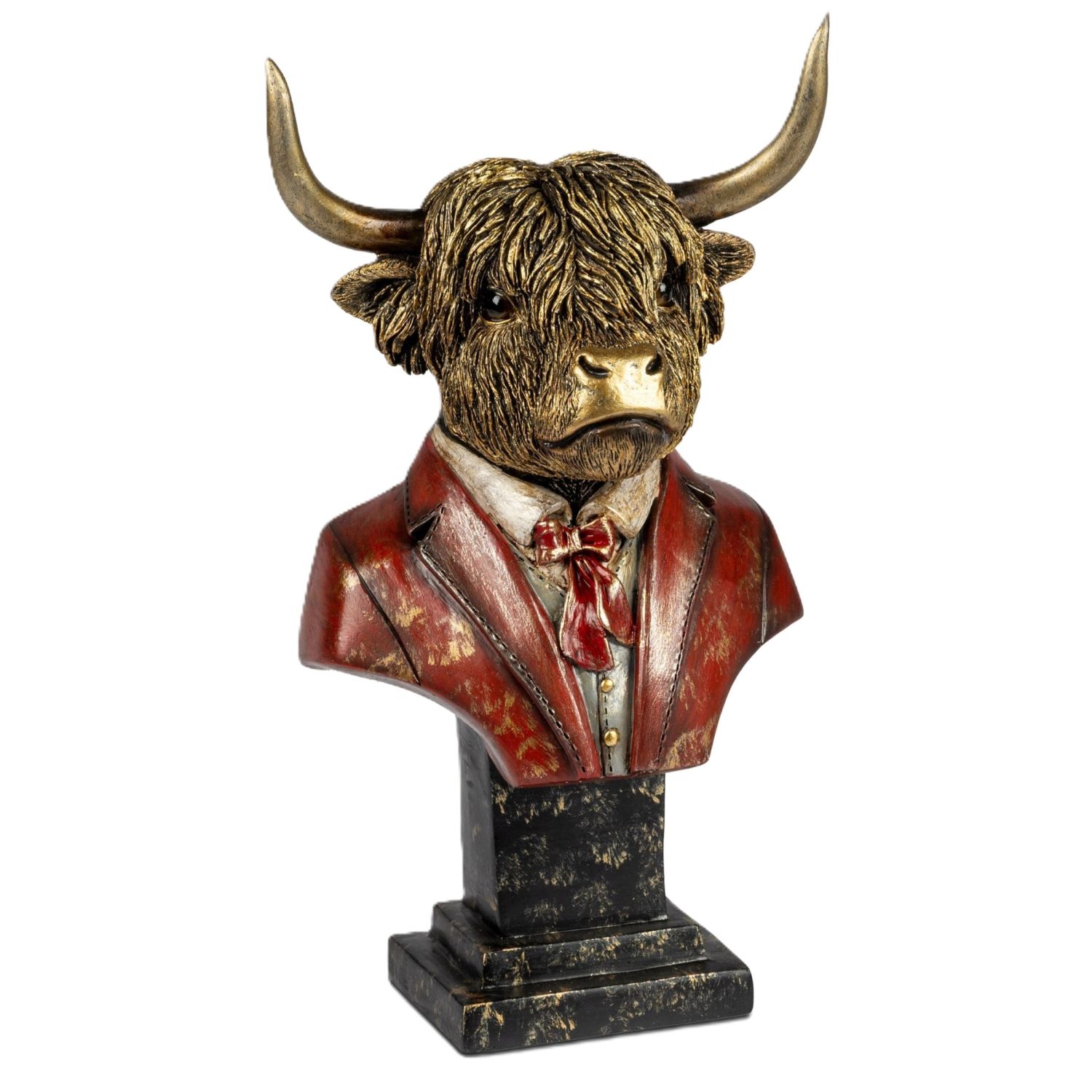Dekoobjekt Büste Kuh im roten Anzug H. 24cm Kunststein Formano