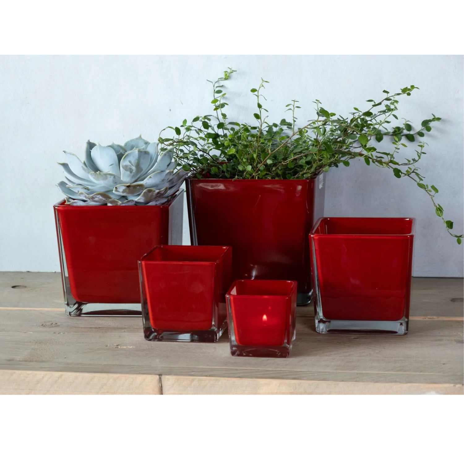 Teelichthalter, Dekoglas WÜRFEL CUBE RED H. 8cm 8x8cm rot Hakbijl