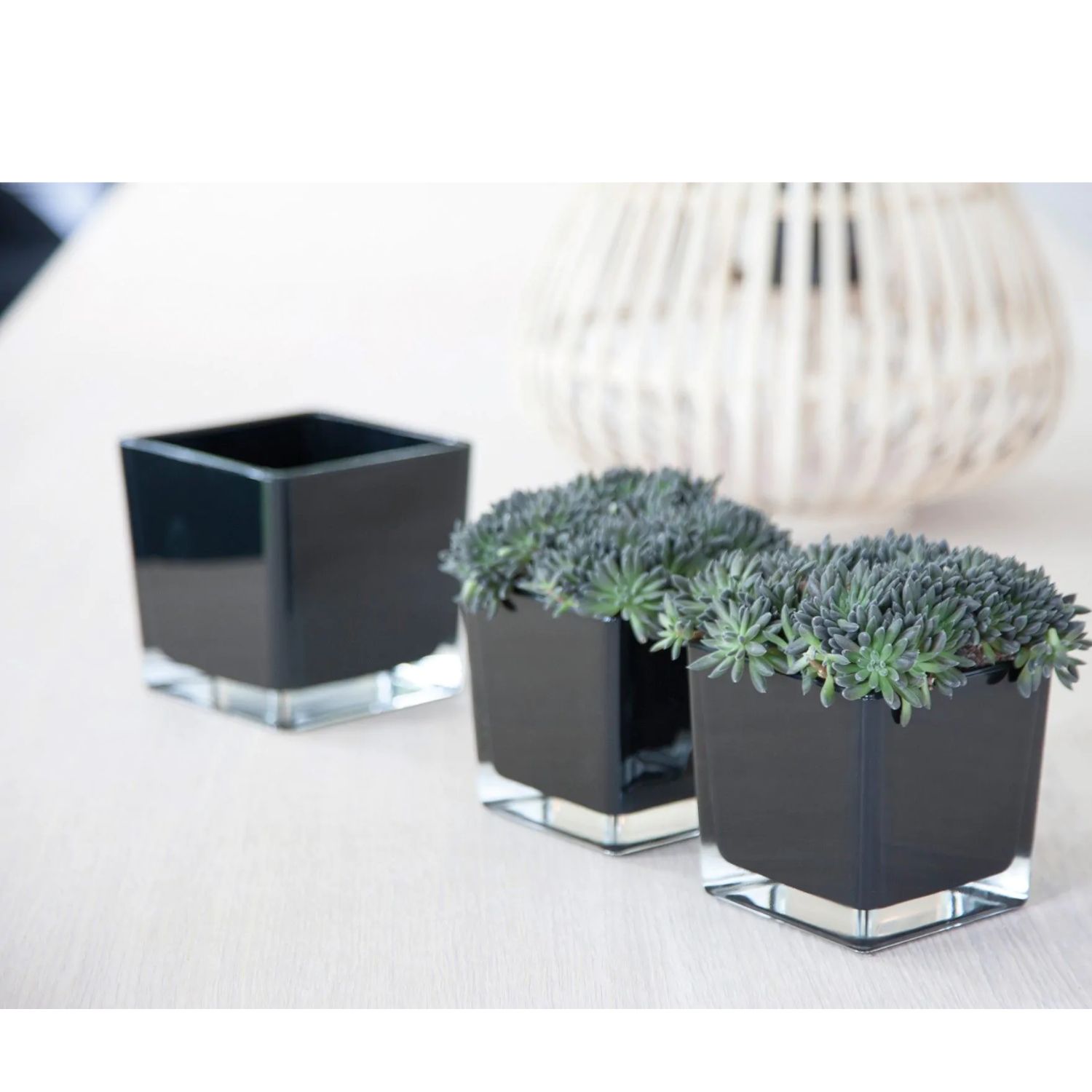 Teelichthalter, Dekoglas WÜRFEL CUBE BLACK H. 10cm 10x10cm schwarz Hakbijl