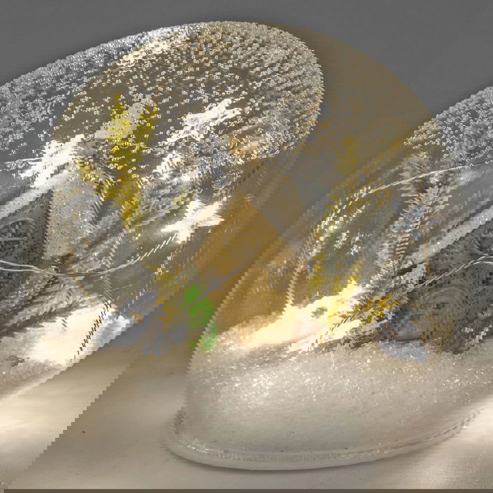 LED Deko Kugel FROSTY WINTERWALD grau zum stellen D. 15cm Glas Formano W25