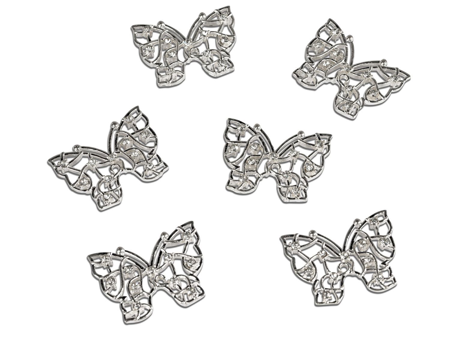 6er Pack Streudeko Schmetterlinge 4cm silber mit Kristallsteinchen Formano F26
