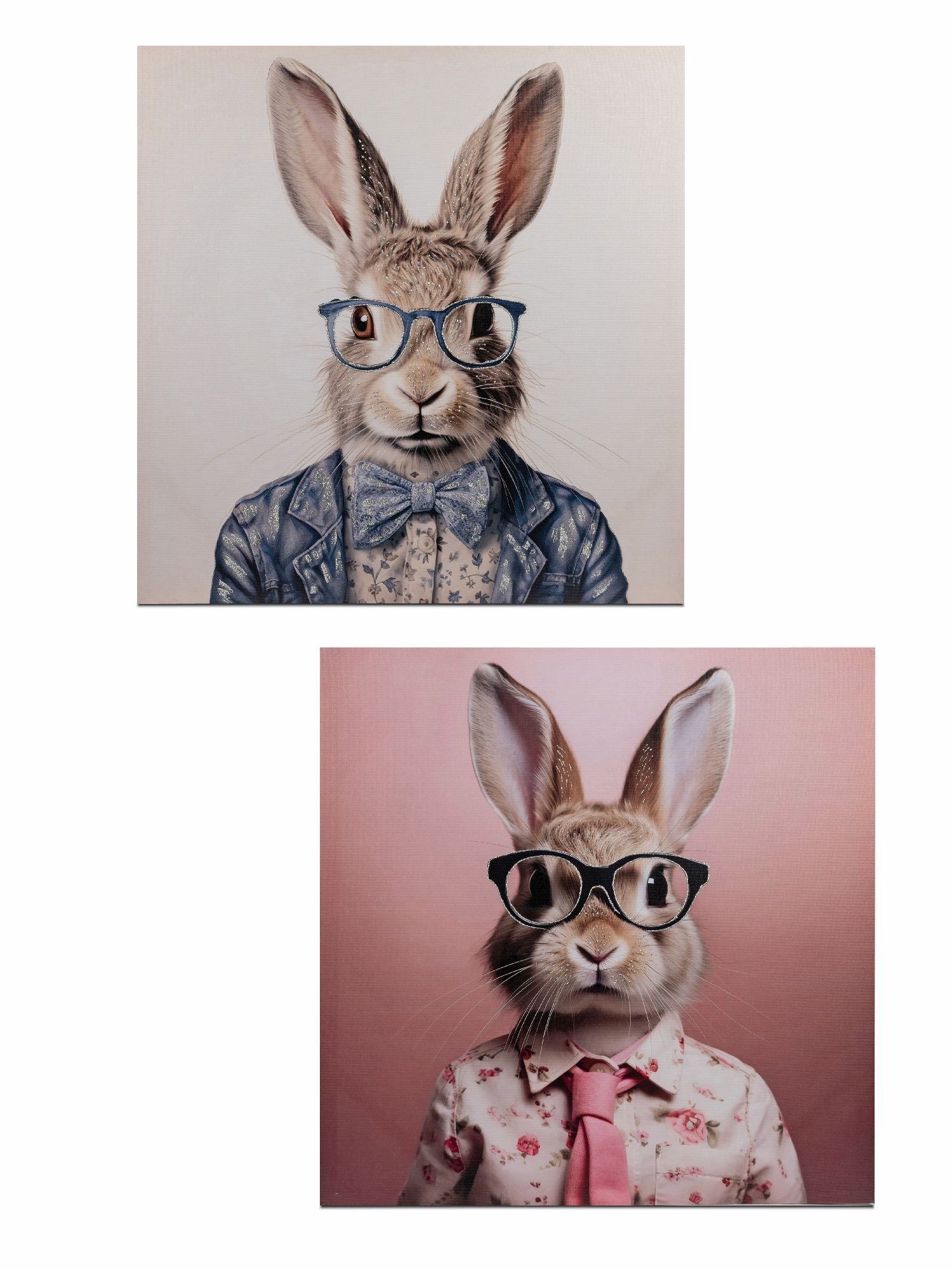 2er Set Wandbilder auf Leinwand Hase mit Brille 60x60cm Formano F25