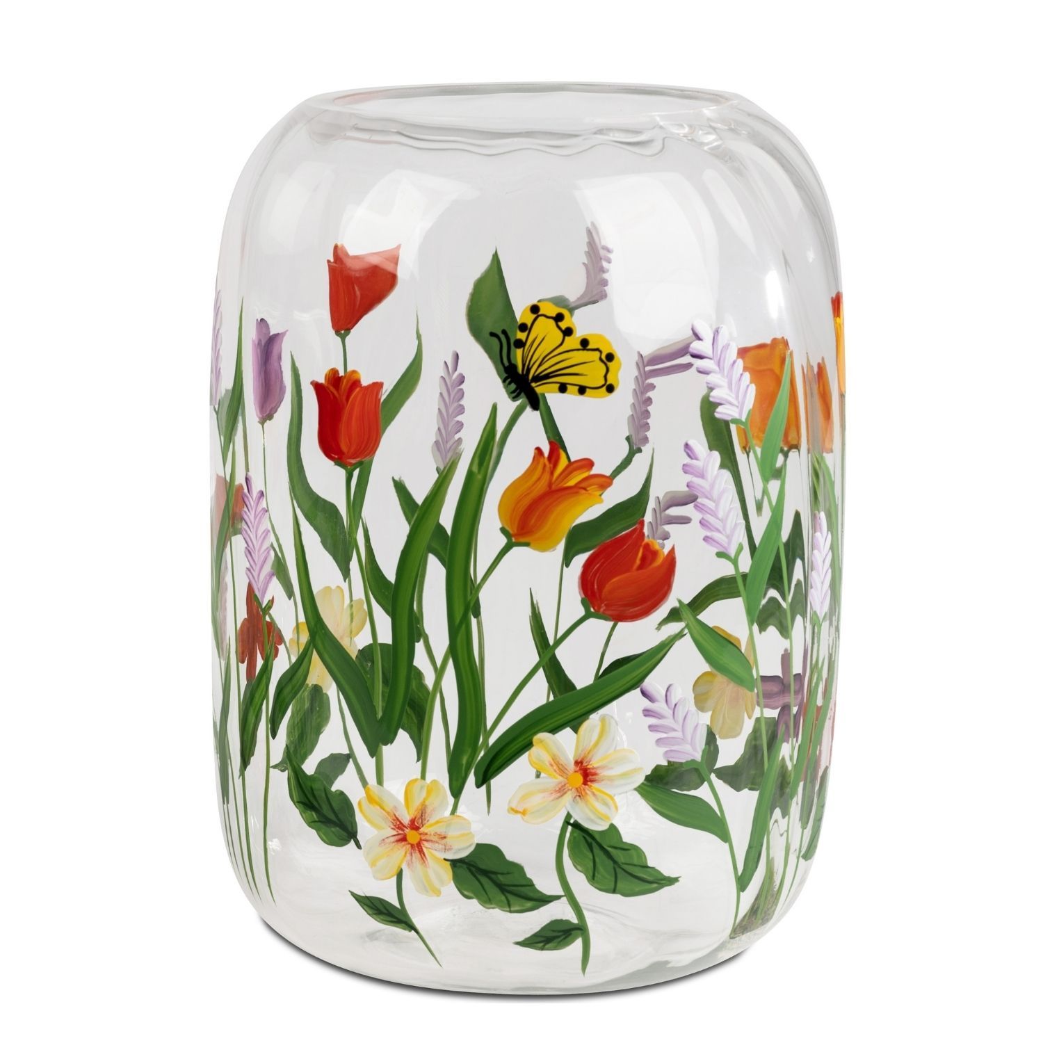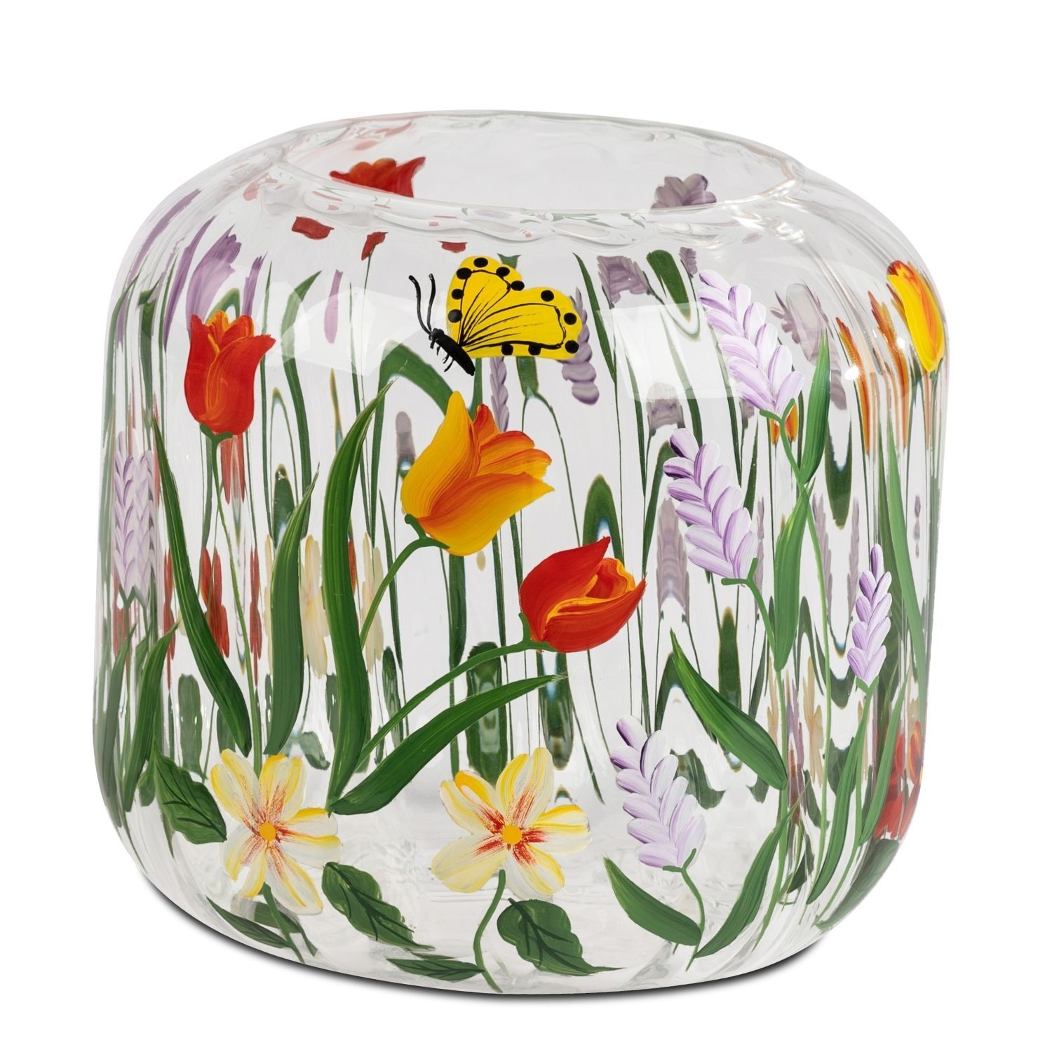 Glasvase, Windlicht Wiesenblumen rund H. 22cm transparent bunt Formano F26