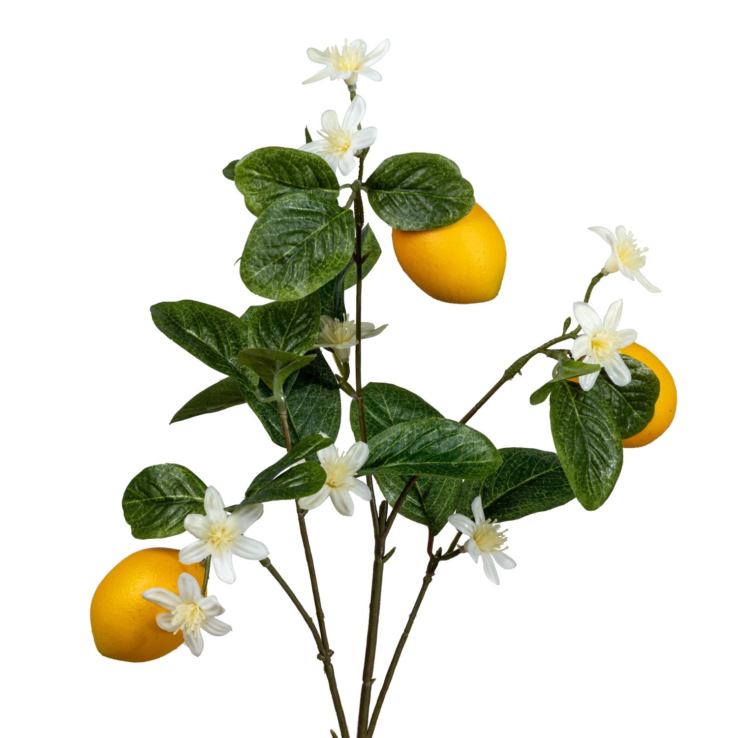 künstlicher Zitronenzweig mit Blüten H. 67cm grün gelb Formano Kunstblumen F26