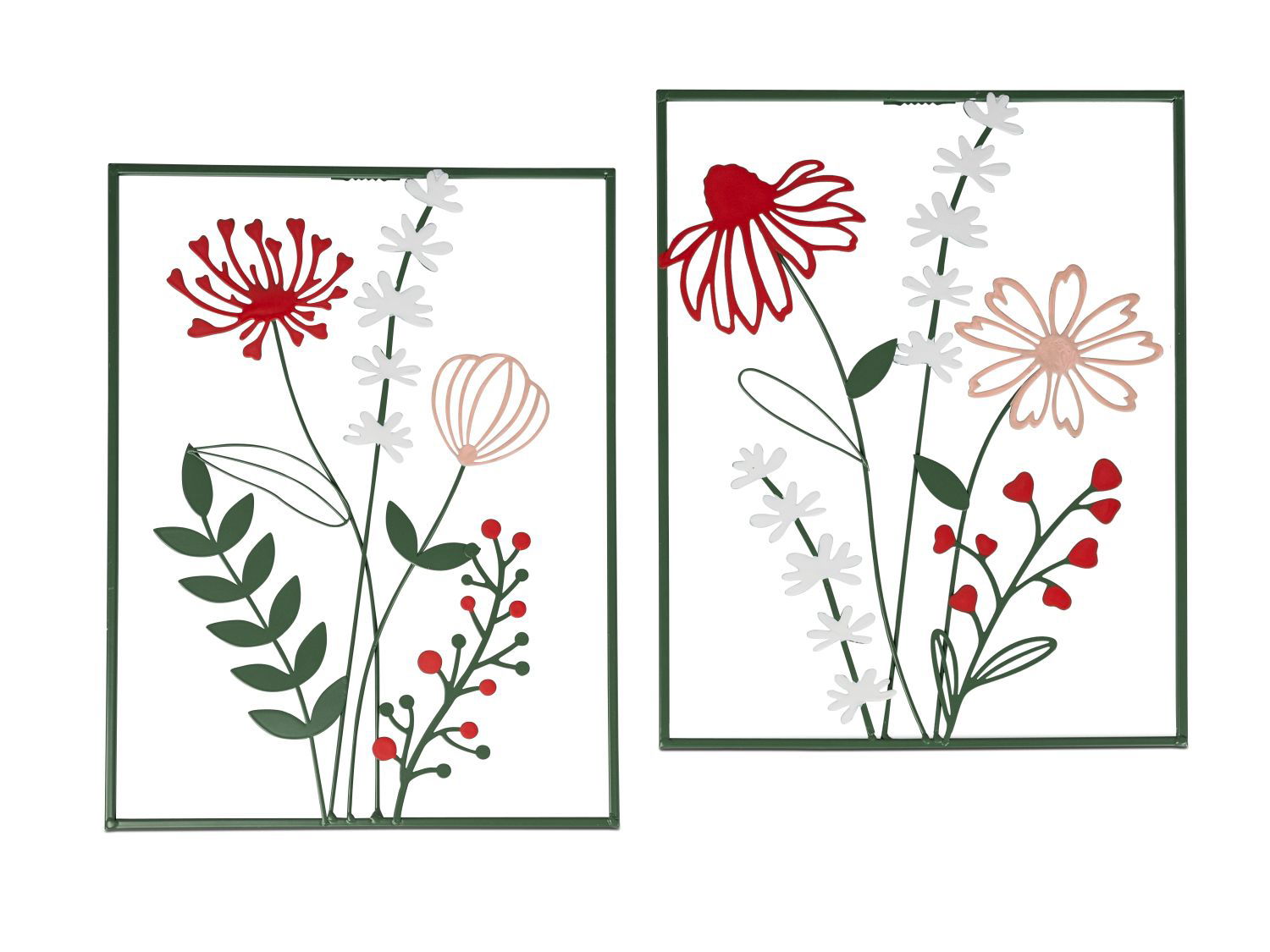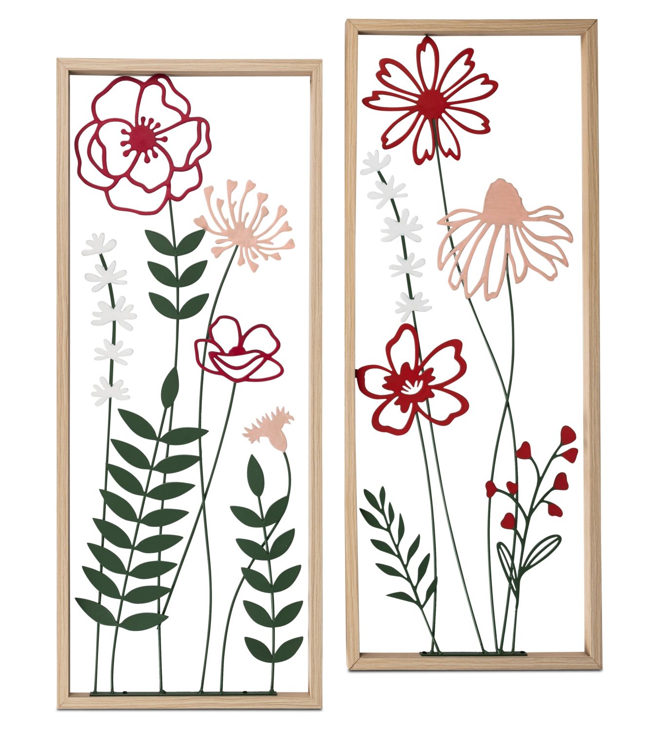 2er Set Wanddeko Wandbilder Blumenweiß rosa H. 90cm B. 30cm Metall Formano WA