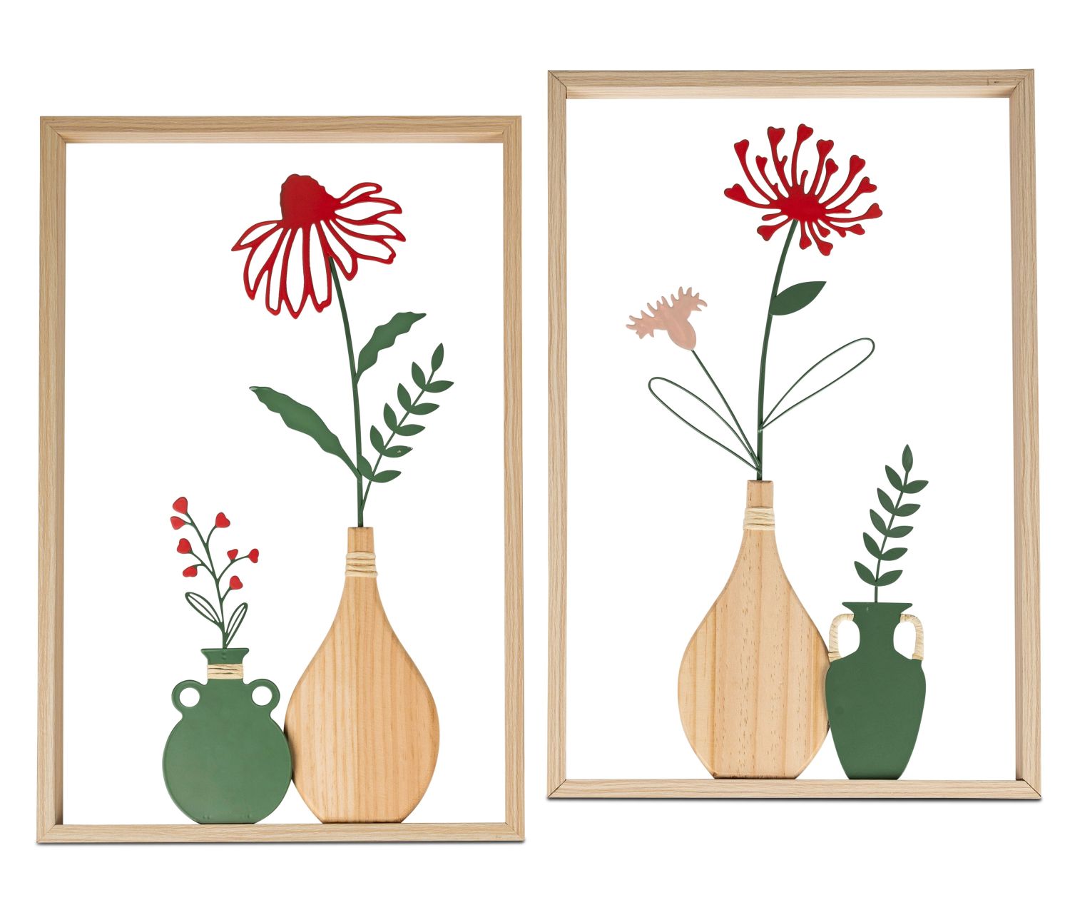 2er Set Wandbilder, Wanddeko Blumen im Rahmen H 65cm grün pink natur Formano F26