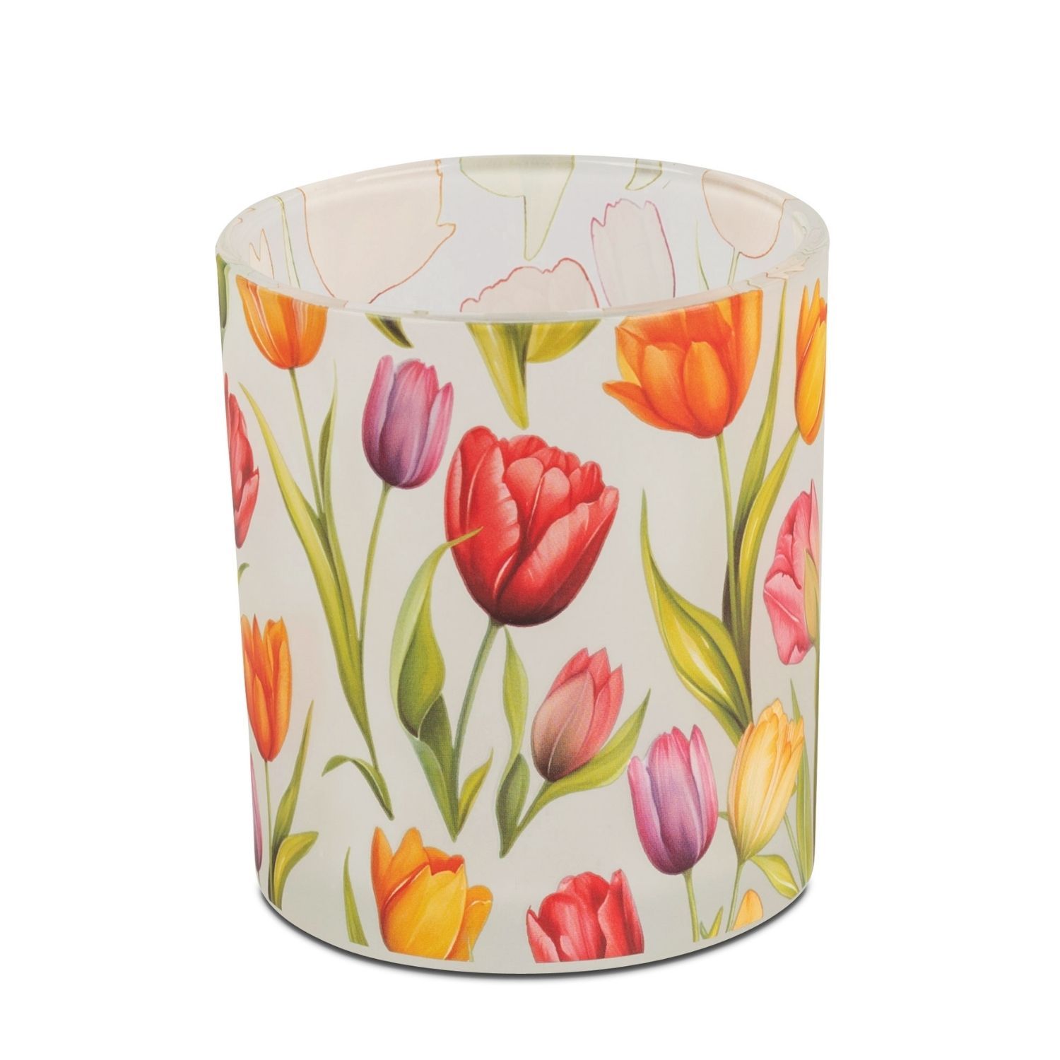 Windlicht, Teelichthalter Tulpen H. 10cm aus satiniertem Glas Formano F26