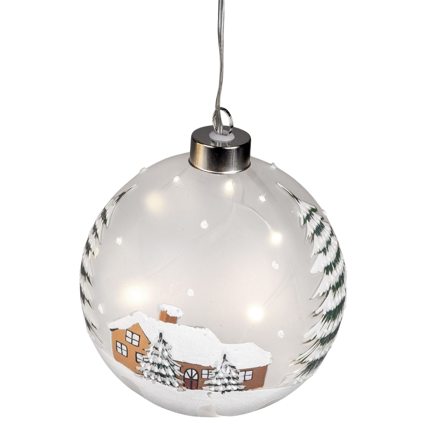 LED Kugel WINTERLANDSCHAFT zum hängen D. 10cm mit Timer aus Glas Formano W25