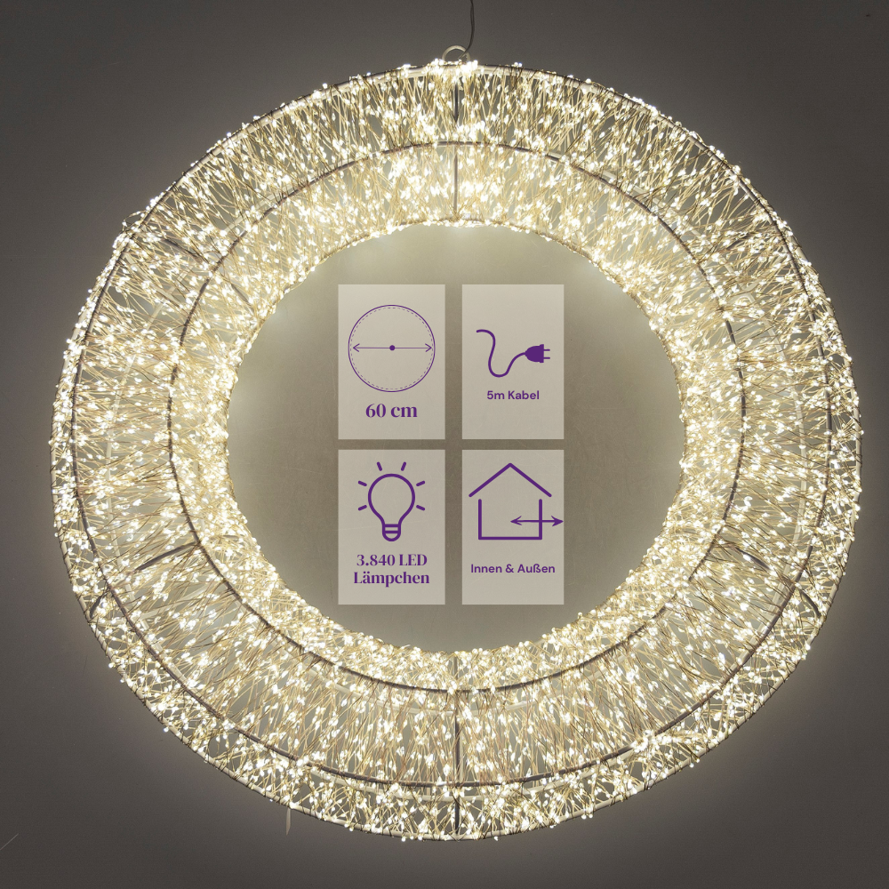 XXL LED Deko Hänger Licht Kranz D. 60cm mit 3840 Micro LEDs Metall Formano W25